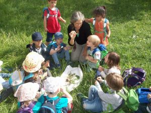 Sei es, dass Linus, 3 jahre, selbstvergessen aus der Zweierreihe ausschert, um zu einem Löwenzahn zu laufen, der zwischen den Asphaltritzen heraus wächst, oder dass beim Mittagessen die Frage auftaucht, wo das Marillenmus herkommt, oder woraus Popcorn gemacht wird. Woher kommen die Maiskörner? Was ist ein Mähdrescher? Viele Gelegenheiten tauchen auf, interessante Dinge zu besprechen.