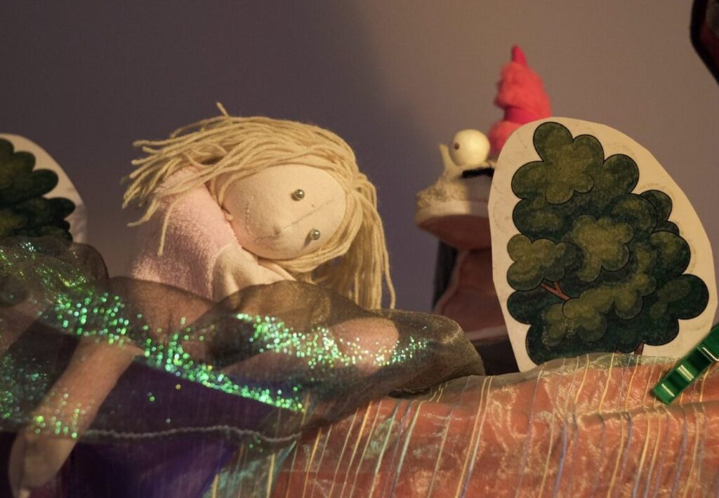 Fröhlich singend tanzt die Fee über die Bühne. Sie entführt ihr Publikum in eine Zauberwelt.