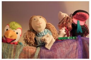 Die Schüler und Schülerinnen der 3. Klassen haben in der Projektwoche kurze Theaterstücke über Freundschaft, über Toleranz, über den Mut, zu sich selbst zu stehen, inszeniert. Unterschiedlichste Handpuppen lassen für ihr Publikum vor liebevoll gestalteter Kulisse Geschichten lebendig werden und animieren zum Mitlachen, Mitfiebern und Mitdenken. Applaus!
