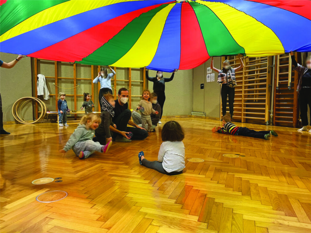 Jede Rhythmik-Einheit ist gekennzeichnet durch Musik (Sprache, Trommeln, Rasseln) und Bewegung und kann um den Faktor Material erweitert werden.
