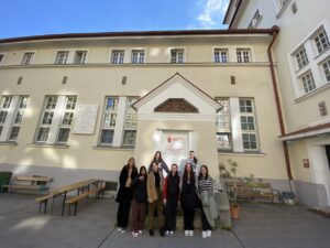 Dort hörten sie von den Mitarbeiter*innen und Teilnehmer*innen Details über die Organisation und die Finanzierung der Einrichtung, die sich in einem ehemaligen Spitalsgebäude befindet.