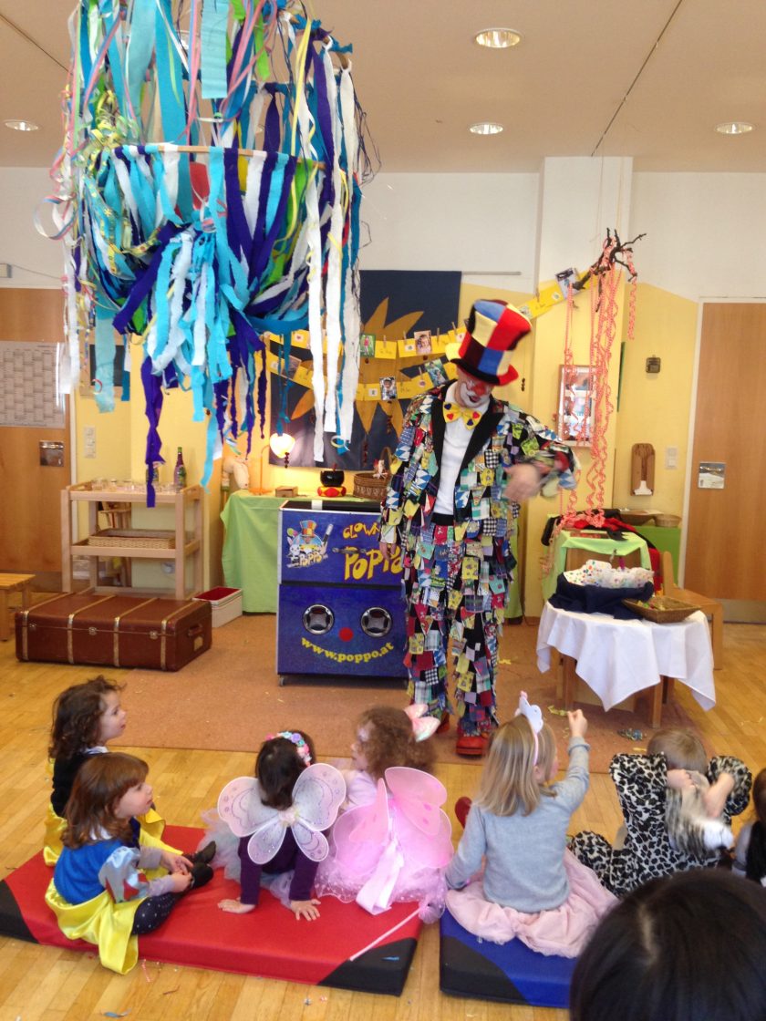 Die Schüler und Schülerinnen der 3. Klassen haben in der Projektwoche kurze Theaterstücke über Freundschaft, über Toleranz, über den Mut, zu sich selbst zu stehen, inszeniert. Unterschiedlichste Handpuppen lassen für ihr Publikum vor liebevoll gestalteter Kulisse Geschichten lebendig werden und animieren zum Mitlachen, Mitfiebern und Mitdenken. Applaus!