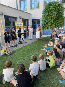 „VoXmi“ bedeutet „voneinander – miteinander Sprachen lernen und erleben“ und bedeutet die aktive Auseinandersetzung mit Sprache und Mehrsprachigkeit sowie interkulturellem Lernen in unserem Kindergartenalltag. Für uns gilt jede Sprache, die das Kind mitbringt als wertvoller Schatz, wobei Sprache in all ihrer Vielfalt mit Körper-, Zeichen-bzw. Bild-Sprache, in Musik und Bewegung in unseren alterserweiterten Gruppen gelebt und gefördert wird.