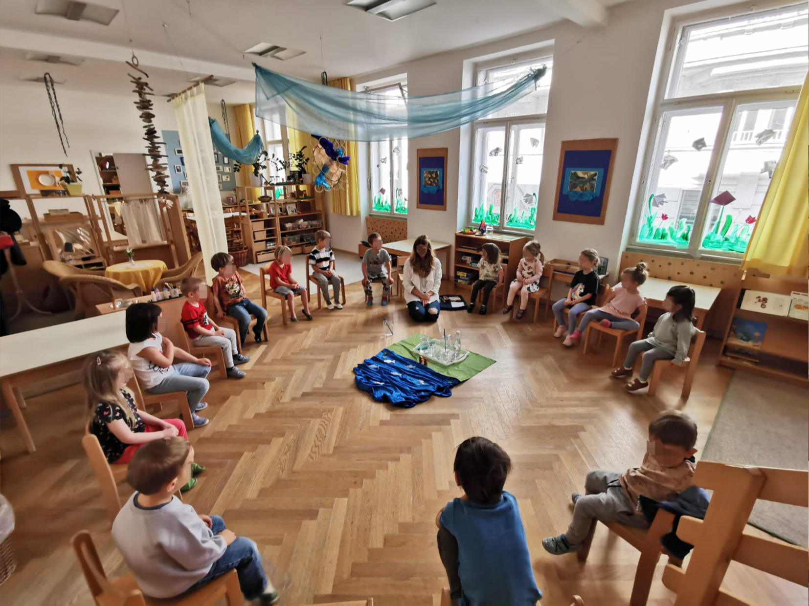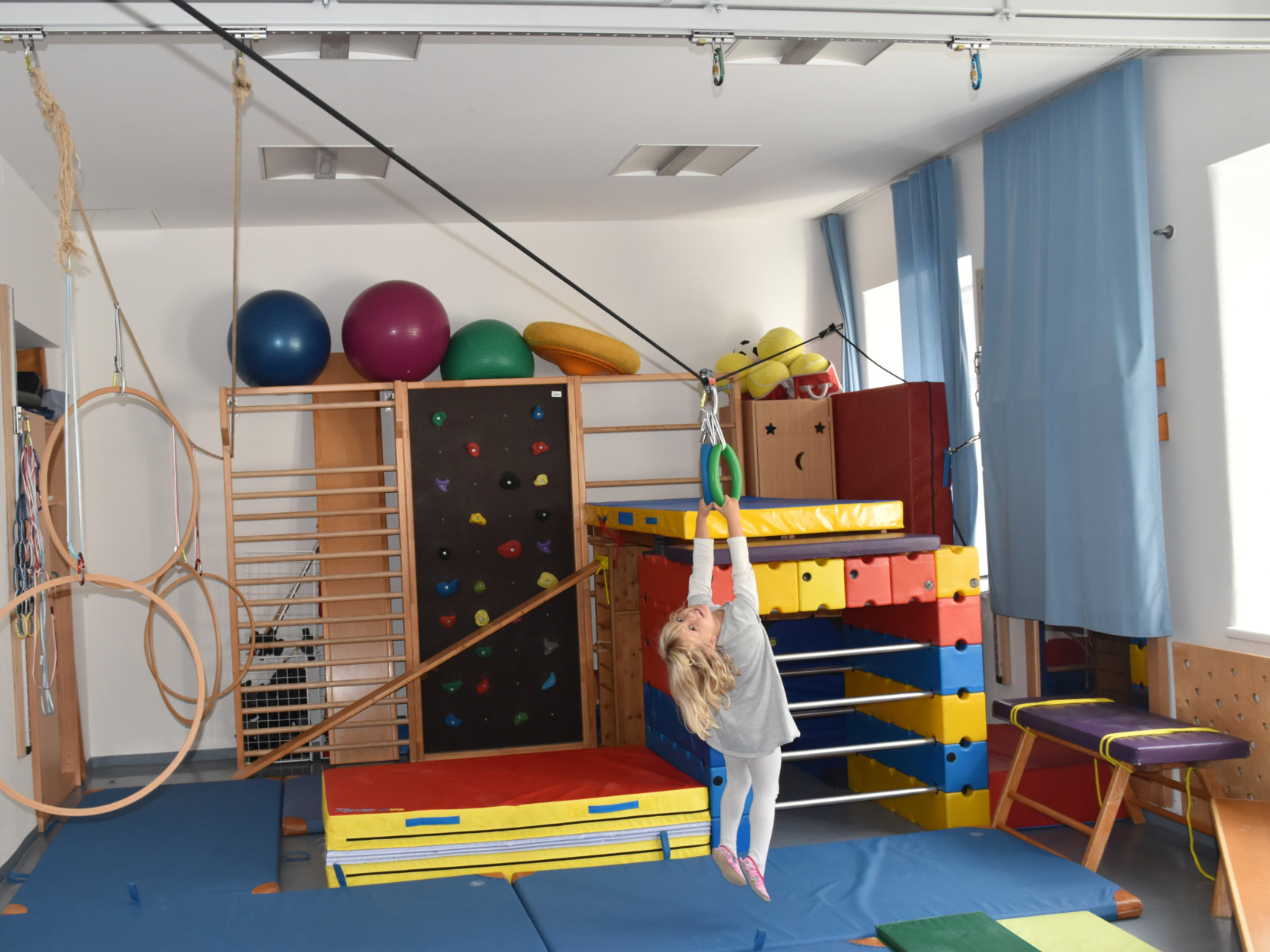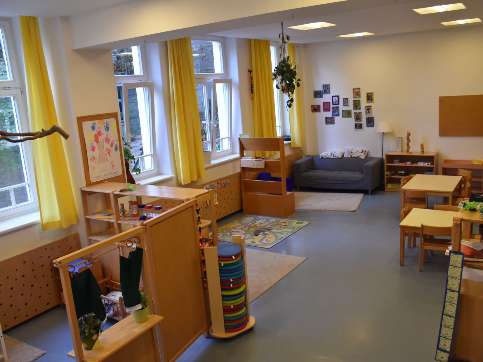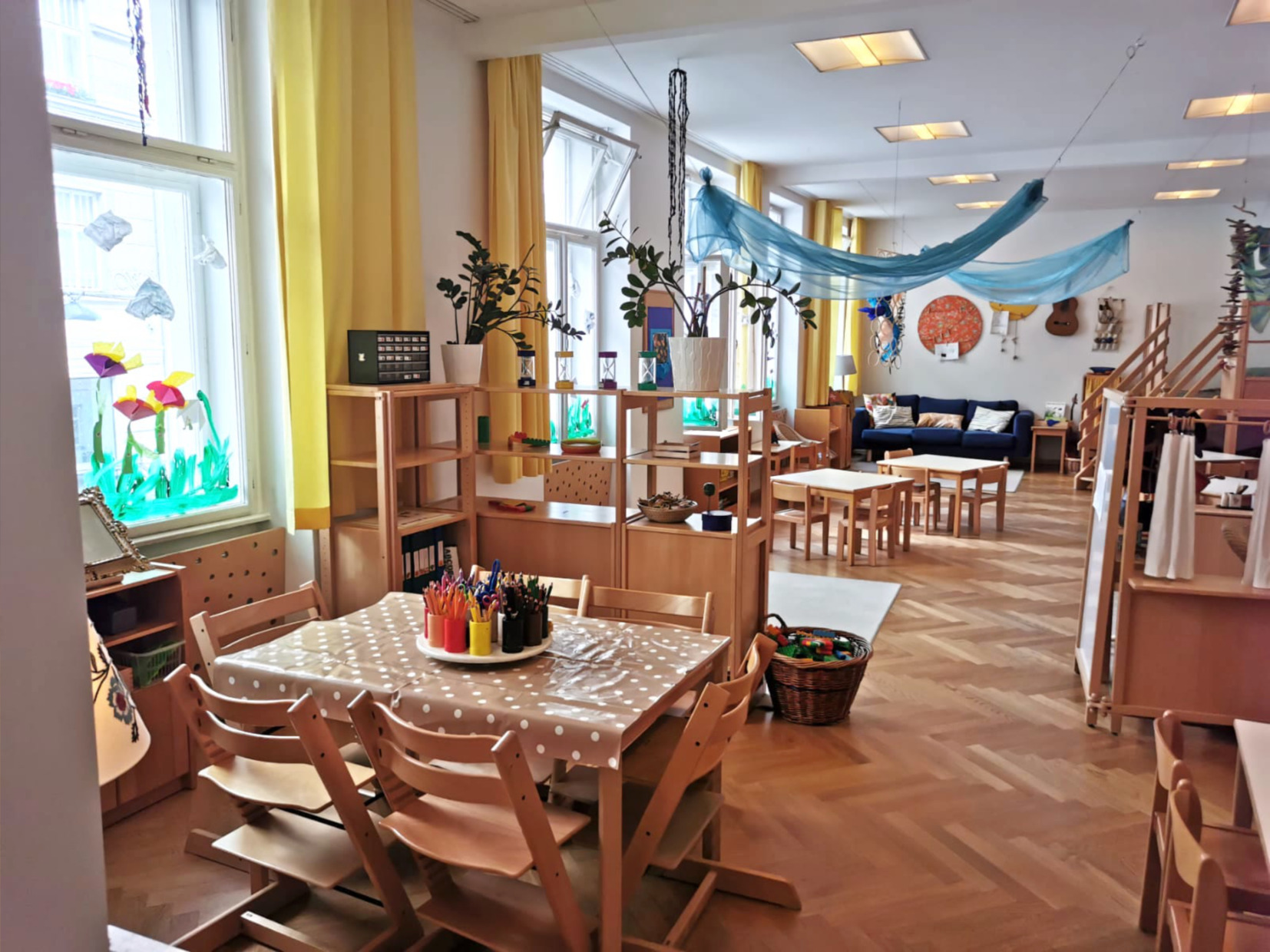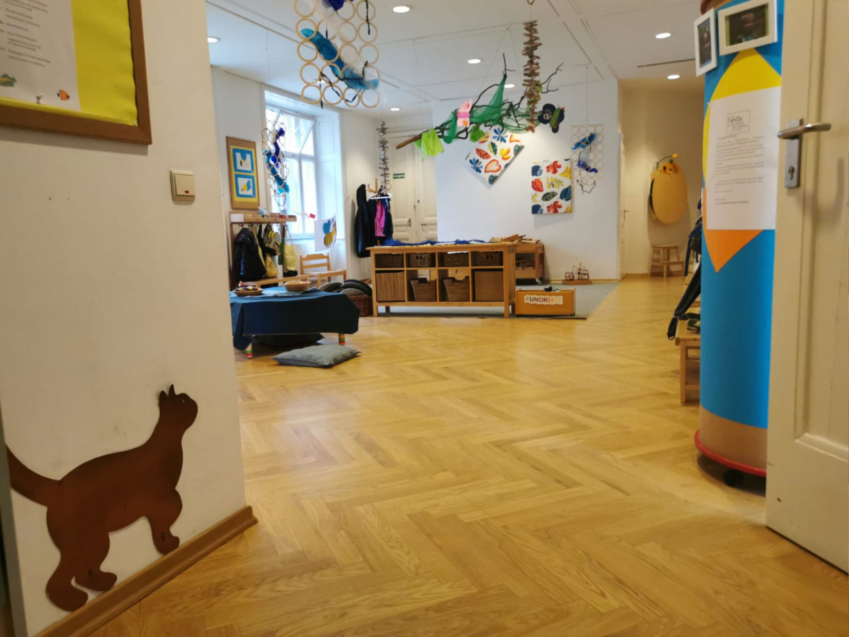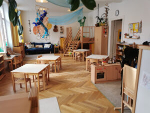 Die Räumlichkeiten des Praxiskindergarten sind großzügig gestaltet und laden zum Explorieren, Spielen, Lernen und Wohlfühlen ein. Zusätzlich zu unseren Gruppenräumen stehen uns der hauseigene Garten, der gruppenangrenzende Bewegungsraum und der Turnsaal der Schule zur Verfügung.