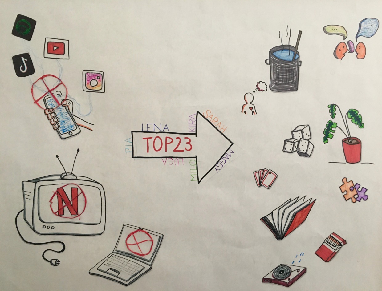 Ziel war es, die eigene Bildschirmzeit zu verringern und zu beobachten, wie sich der Konsum, aber auch der bewusste Verzicht digitaler Medien auf das eigene Schlafverhalten, Sozialverhalten, auf die Aufmerksamkeit, Produktivität und Motivation auswirkt und diese beeinflusst. In einer Art Selbstversuch wurden in einem bestimmten Zeitraum digitale Medien konsumiert und dann bewusst darauf verzichtet. Ein Großteil der Gruppe kommunizierte in dieser Zeit ausschließlich über SMS und Anrufe und verzichtete auf die beliebte Messenger-App „WhatsApp“.