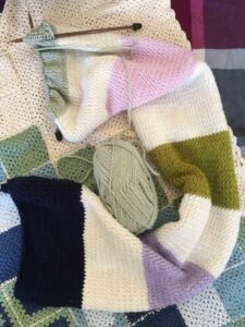 Da eine Person der Gruppe im Häkeln bereits geübt war konnte diese den Rest in dieser Technik anleiten. Es wurde oft gemeinschaftlich nach Lust und Laune an unterschiedlichen Orten gehäkelt und so entstanden verschiedenste Handarbeiten. (z.B. Stirnband, Pullover, Brillentasche, Kosmetiktasche, ...)