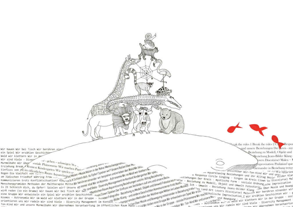 Am Ende des zweiten Semesters findet ein Modul zum Thema „Beziehungen“ statt. Alle Lehrenden bieten im Rahmen der Wochenstundenanzahl ihrer jeweiligen Fächer Einheiten in längeren Blöcken (vier Einheiten und mehr) an, die Studierenden können (unabhängig davon, ob sie von diesen Lehrenden in den Input-Phasen begleitet worden sind oder nicht) in einem vorgegebenen Stundenausmaß frei wählen. Hier werden Inhalte angeboten, die in den herkömmlichen Input-Phasen oft keinen Raum haben, ebenso kann auch mit kleineren Gruppen intensiv an einer Thematik gearbeitet werden. Organisiert werden die Angebote also je nach Sinnhaftigkeit in Groß-, Klein- und Kleinstgruppen, der Schwerpunkt „Beziehungen“ für alle Angebote soll analog zur ICH-Werkstatt (mit biografischer Reflexion) auch eine persönliche Weiterentwicklung für die Studierenden beinhalten. Beispiele für Wir-Workshops sind „Wir(r) reden“, „Wir bauen“, „Call & response“, „Wir spielen unsichtbar“, „Wir in der Natur“, „Beziehung in der Erziehung“, „Pixilation“, „Wir schweigen“, „Circle singing“, „Wir atmen“, etc..
